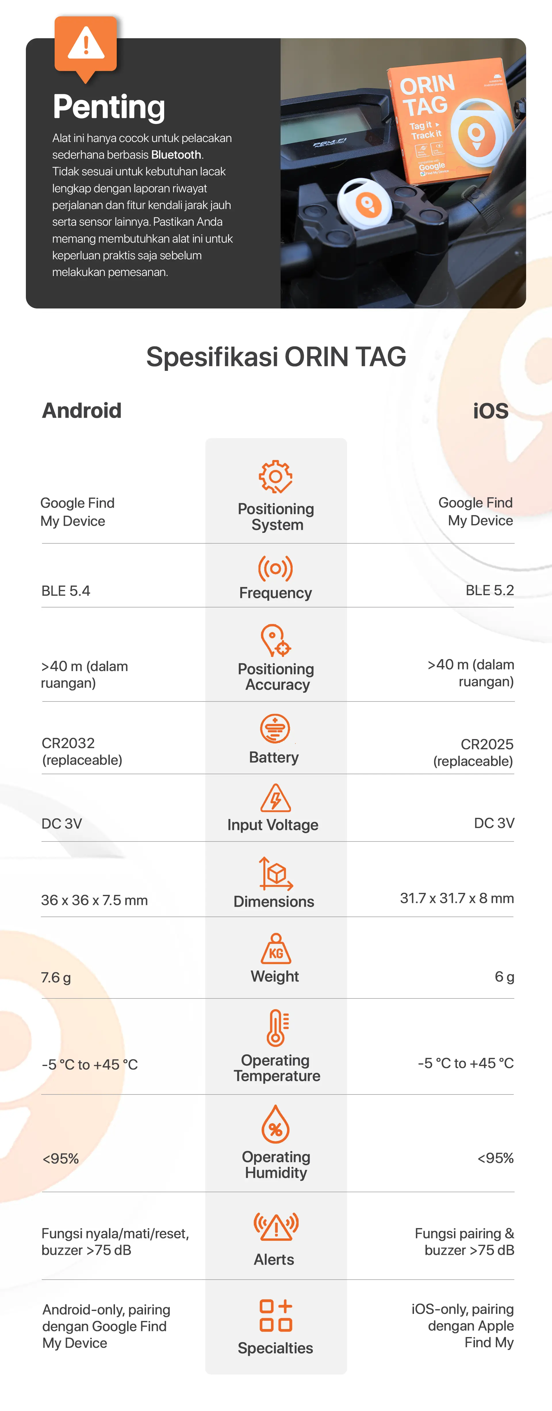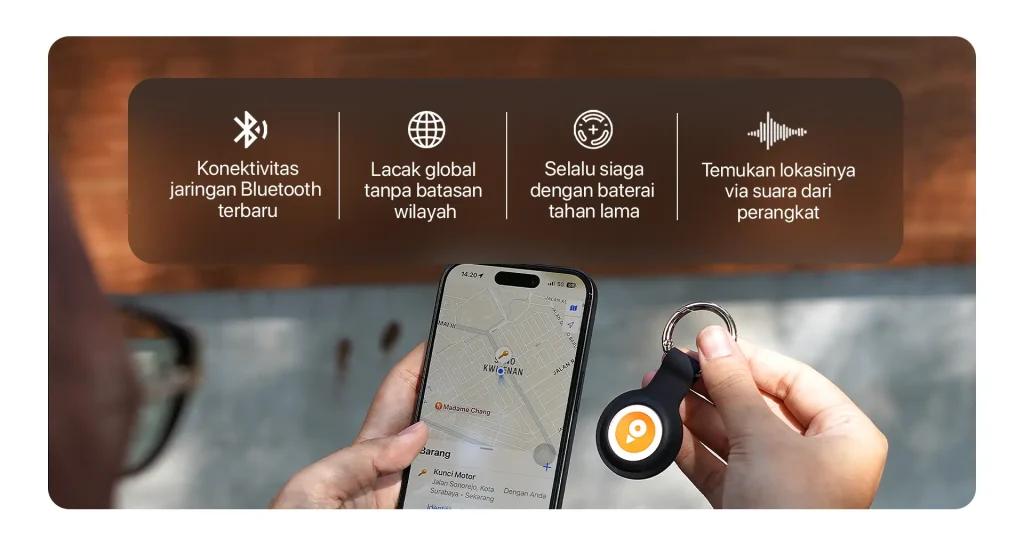 Menampilkan pembaruan lokasi terkini serta dapat memutar animasi suara untuk memberi petunjuk saat ORIN TAG semakin dekat